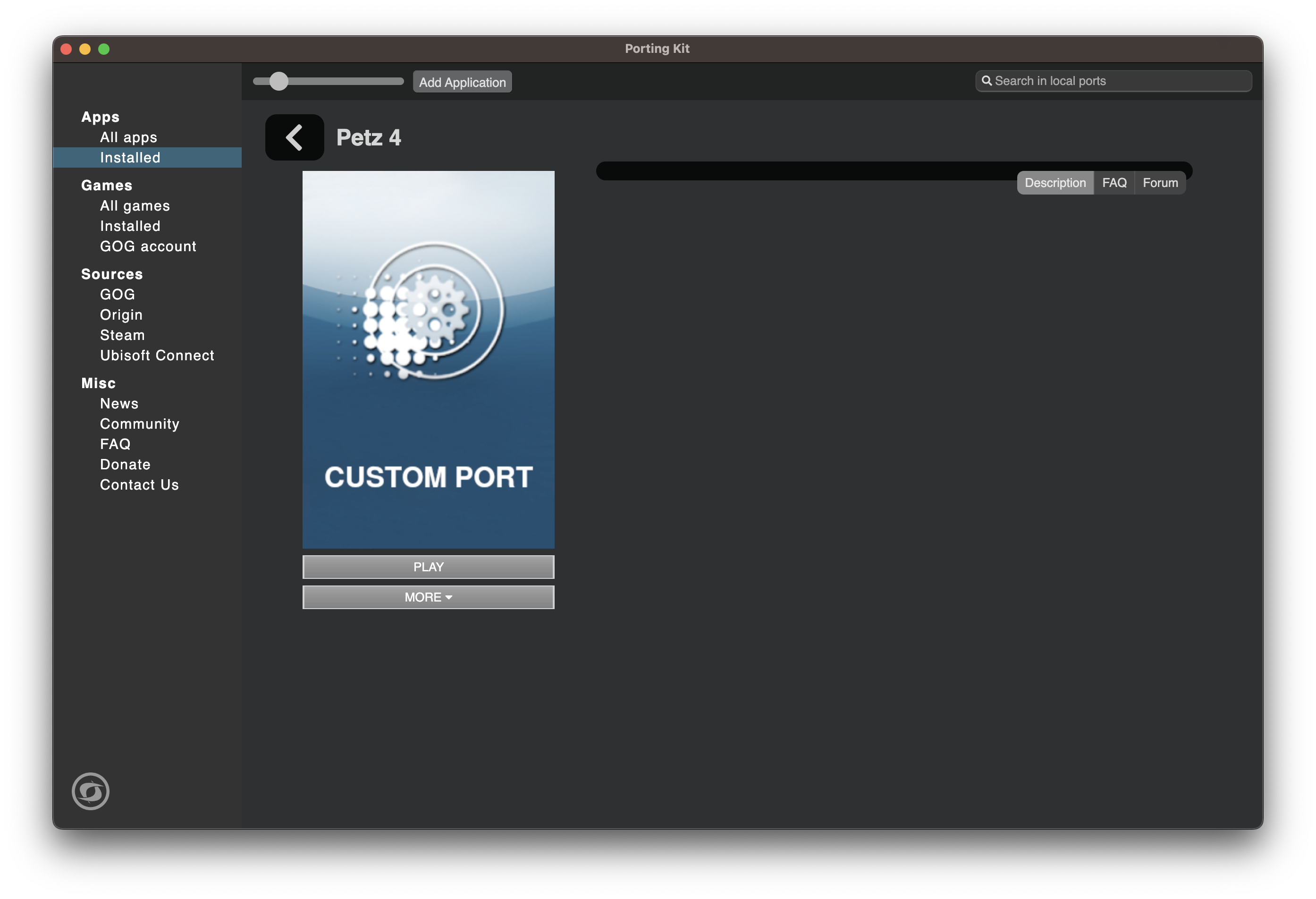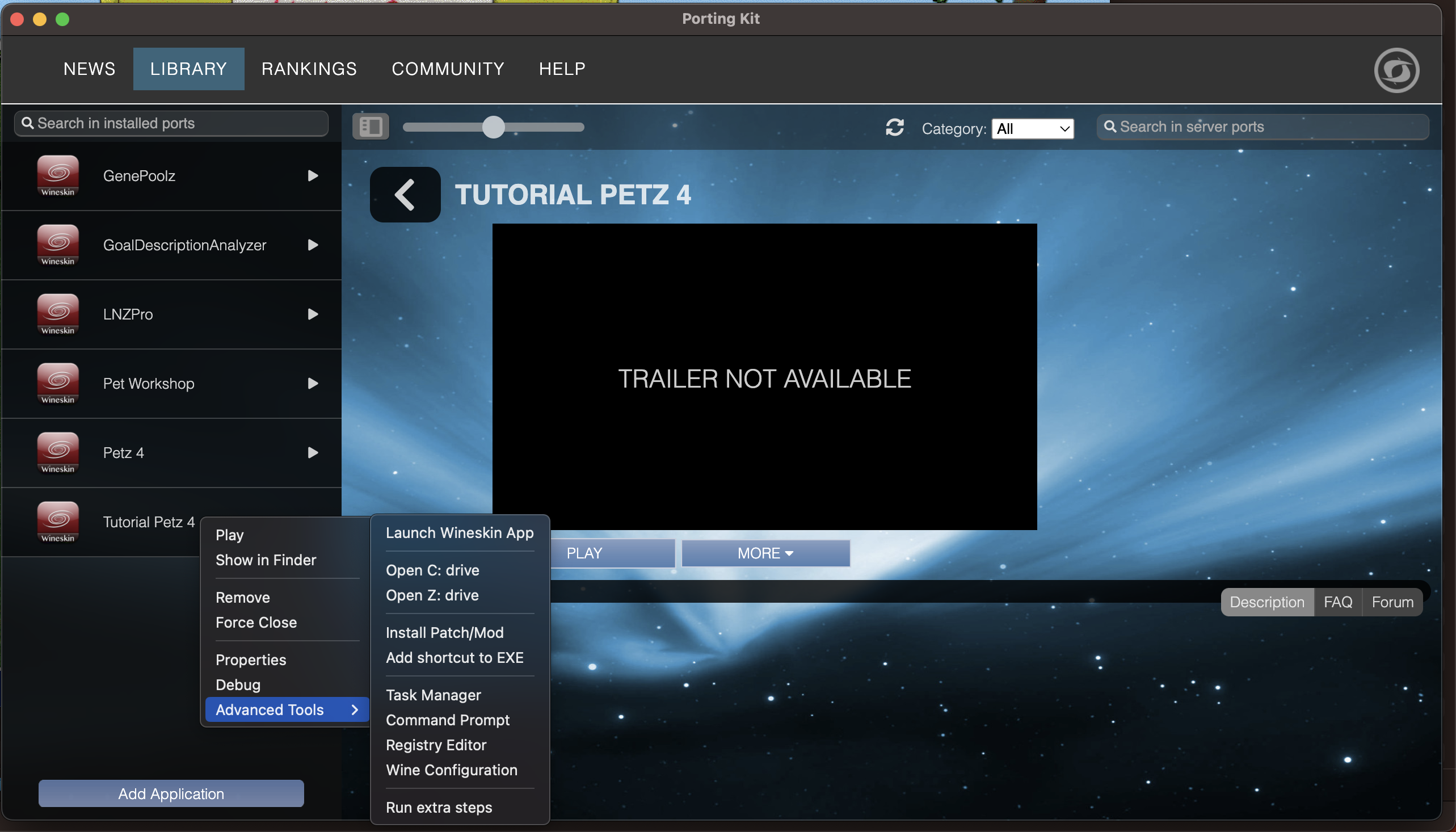 1. To import these registry values, open Porting Kit and right click on your Petz 4 custom port in the Apps → Installed section.