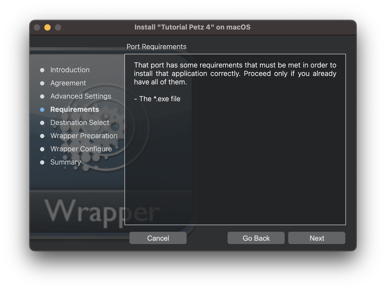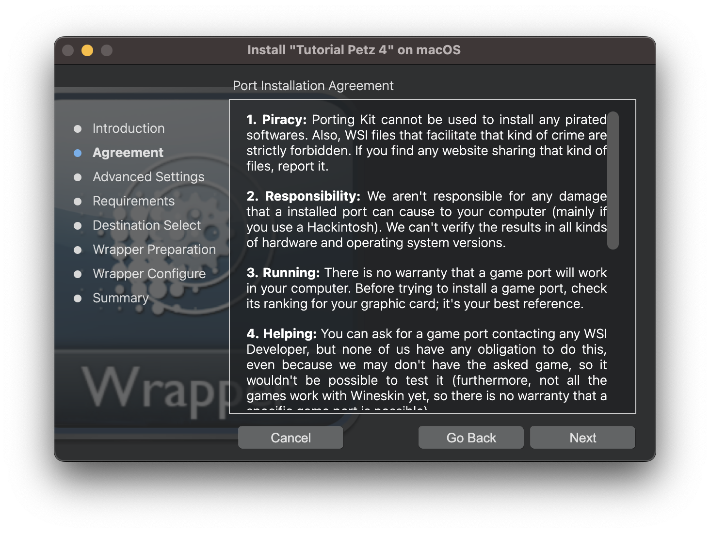 3. Name your custom port Petz 4, as it will be the name of the macOS application that is created (Petz 4.app). You can technically name it whatever you'd like, but naming your port after the exe you are using is best. Note: I have used Tutorial Petz 4 for this tutorial, since my main Petz 4 port already exists.