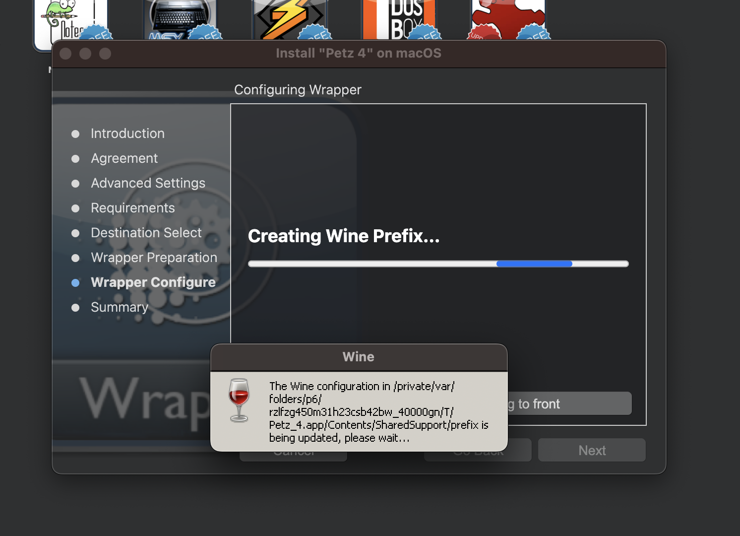 9. Porting Kit runs through a few different configuration steps, and will open and close various copies of wine32on64-preloader as it installs winetricks and other required wrapper elements. Just let it do its thing-- it may take a while! You may receive a couple of pop-ups asking to give your wineskin access to your computer Desktop or microphone. Be sure to allow this!