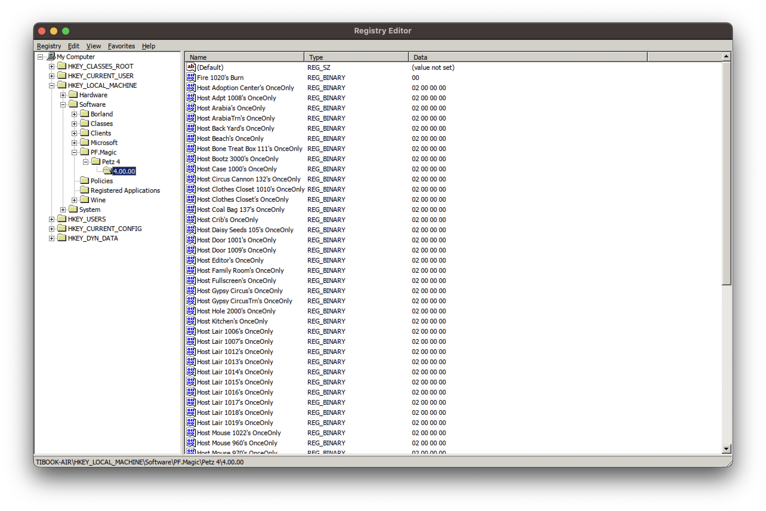 4. Click on the 4.00.00 registry, and you should see a handful of Petz 4-related registry values.